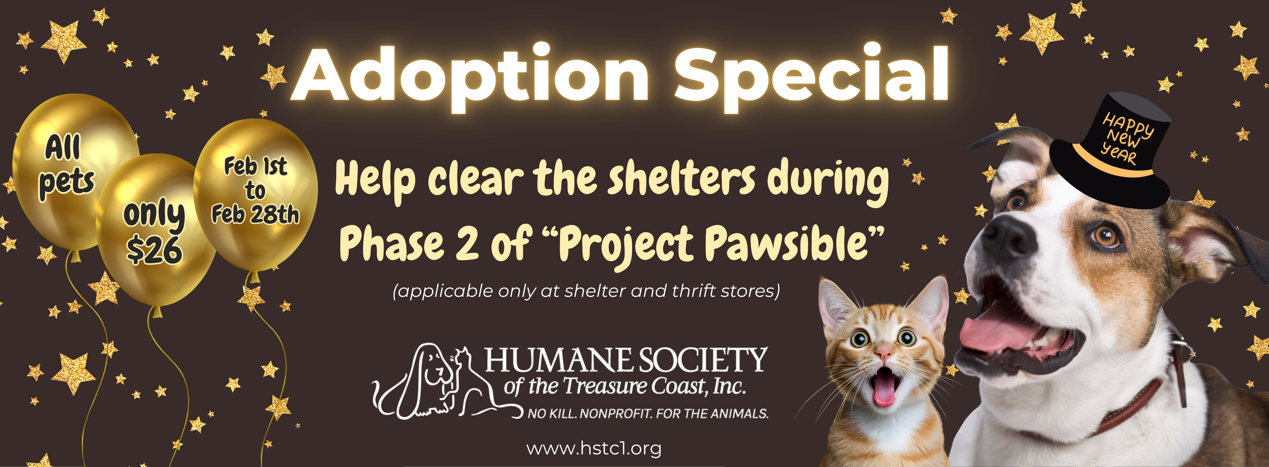 We will be offering a special adoption promotion from Feb. 1 to Feb. 28. All pets are $26 during this time (eligible at shelter and thrift stores only). If you’ve been thinking about adding a new furry family member, now is the perfect time.